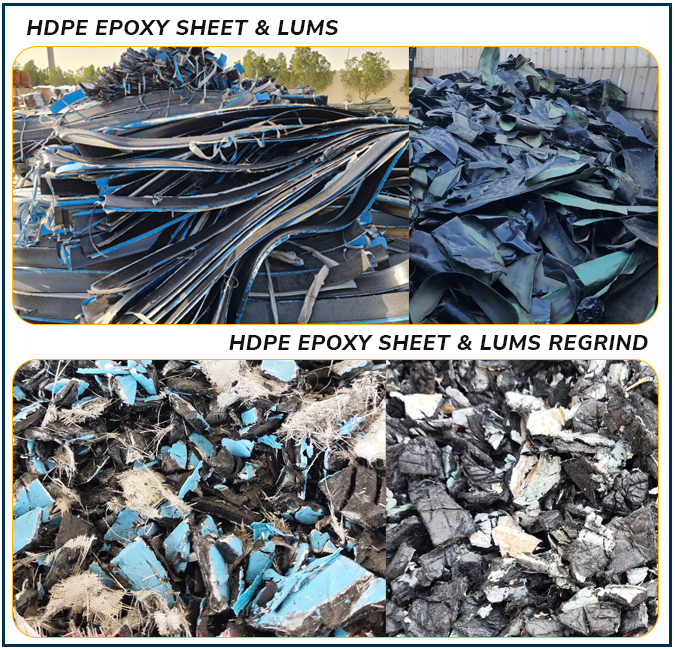 HDPE Sheet Scraps from MS Pipe Coating Materials. It can easily be recycled due to its high melting point and purity.