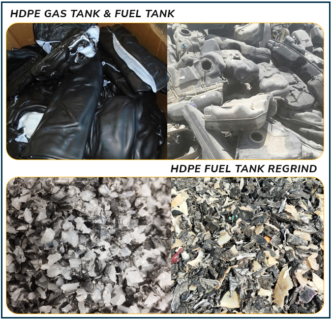 HDPE Fuel Tank Scrap Abbereviation for hight Density Polyethylene.It is Not Just One Of The most Versatile Plastics- It is Used In HDPE Pipe Manufuctruing. It can easily be recycled due to its high melting point and purity.